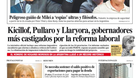 La tapa del Diario PERFIL del domingo 25 de enero de 2026